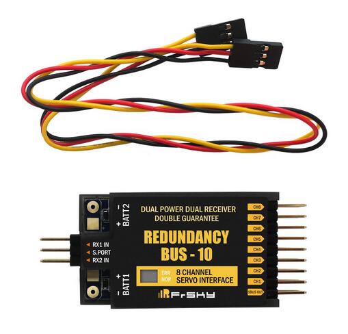 El bus de redundancia de FrSky es un módulo de tablero de control único que puede operar 2 receptores y 2 baterías para brindarle total tranquilidad al volar su modelo. También puede operar sus servos desde el tablero de control con protección total contra sobrecargas de alto voltaje.